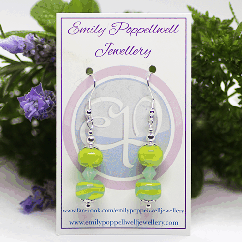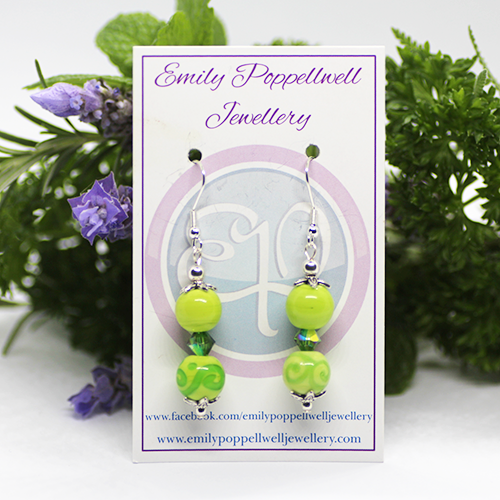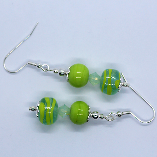 "Doubles" - Artisan Glass bead earrings - green and green swirls doubles