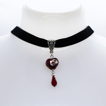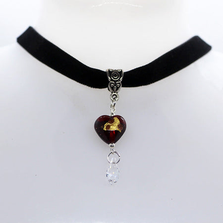 Quick Shop Dark Red Murano Glass heart with red crystal drop on black velveteen choker $22.50 Quick Shop