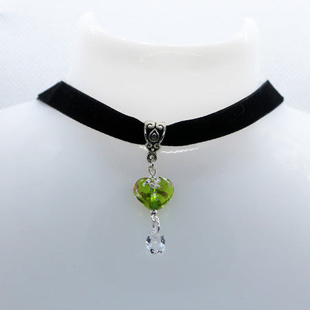 Quick Shop Light Green Murano Glass heart with clear crystal drop on black velveteen choker $22.50 Quick Shop