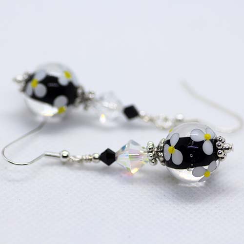 Simply elegant black, white and clear accented Artisan Glass Earrings