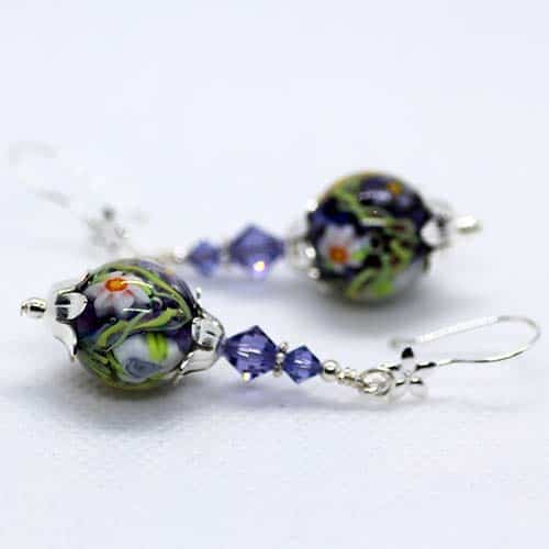 Deep Purple Artisan Glass Earrings with embedded Murrine