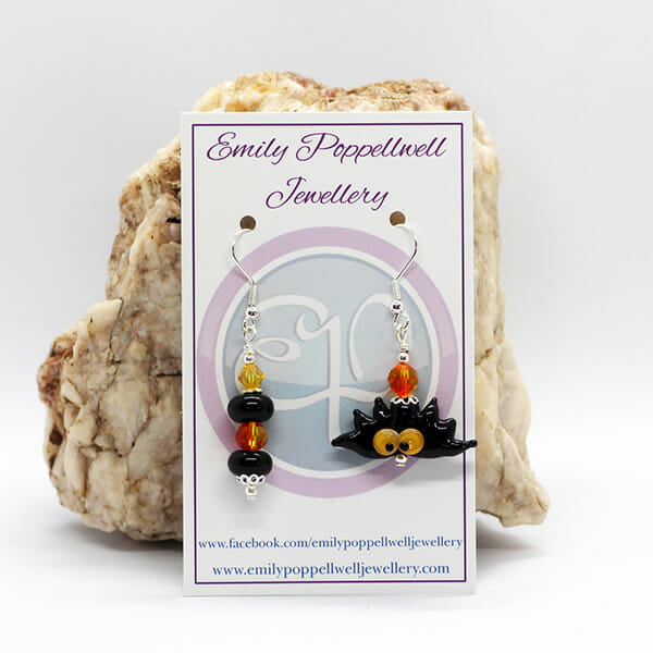 Orange Mismatched Halloween Bat Artisan Glass earrings