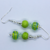 'Doubles" - Artisan Glass bead earrings - Light Aqua, green swirls and green crystal beads doubles