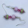 "Doubles" - Artisan Glass bead earrings - pink and green pattern, pink Swarovski crystal and pink bead doubles