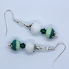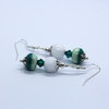 Home/Collections/Artisan Glass Earrings/"Doubles" - Artisan Glass bead earrings - White and green pattern, dark green Swarovski crystal and white beads