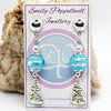 I have accented these beads with blue crystal beads, Christmas Bell drops and silver plated large round studs.