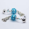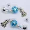 I have accented these beads with blue crystal beads, Christmas Bell drops and silver plated large round studs.