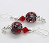 Artisan Glass Christmas Red Murrine Bead Earrings with star hooks