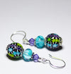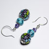 Blue, Purple & Green Artisan Glass Earrings with embedded Murrine