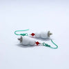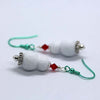 Handmade Christmas Artisan Glass White Snowman earrings with Red Crystals & Green Hooks