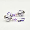 Brighten your style with these Lilac Ribbed Murano Glass Earrings, featuring rich clear & lilac striped glass detailed with a sterling silver inlay. Light lilac pearl and crystal accents add sparkling femininity, while playful purple enamel hooks provide a cheerful pop of colour. These earrings blend delicate charm with vibrant design, perfect for adding a fun and elegant touch to any outfit.