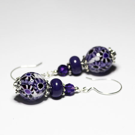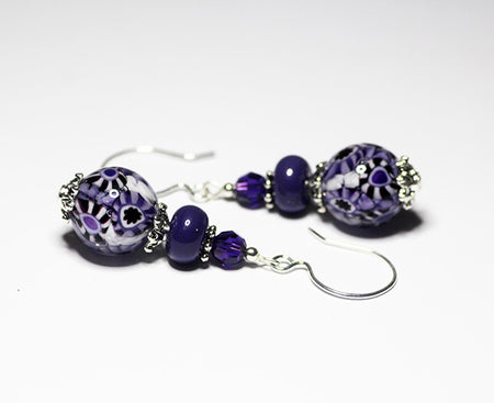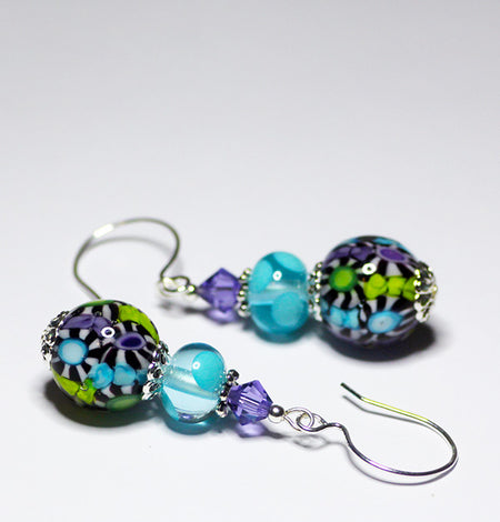 A collection of Murano and Artisan glass bead earrings with various different stylish components.