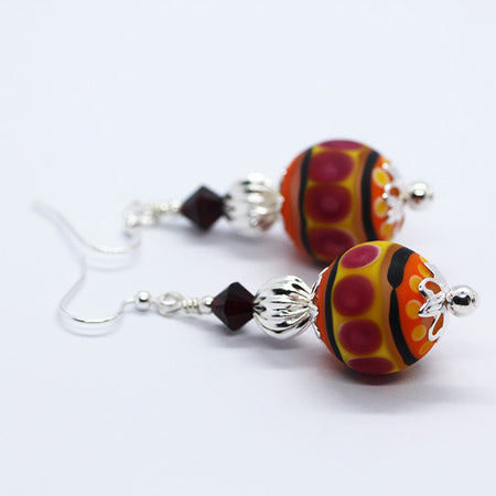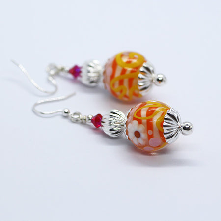 A collection of Murano and Artisan glass bead earrings with various different stylish components.