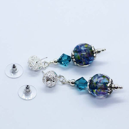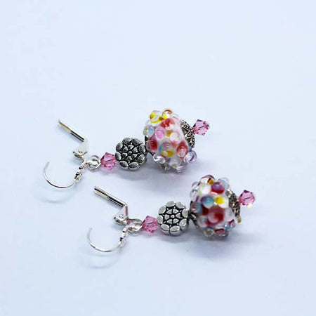 A collection of Murano and Artisan glass bead earrings with various different stylish components.