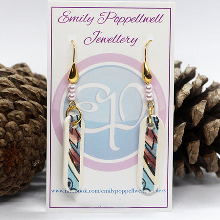 Gold Plated Deep Pink/Blue Ceramic Drop Earrings with Artisan Glass beads and Cultured Pearls