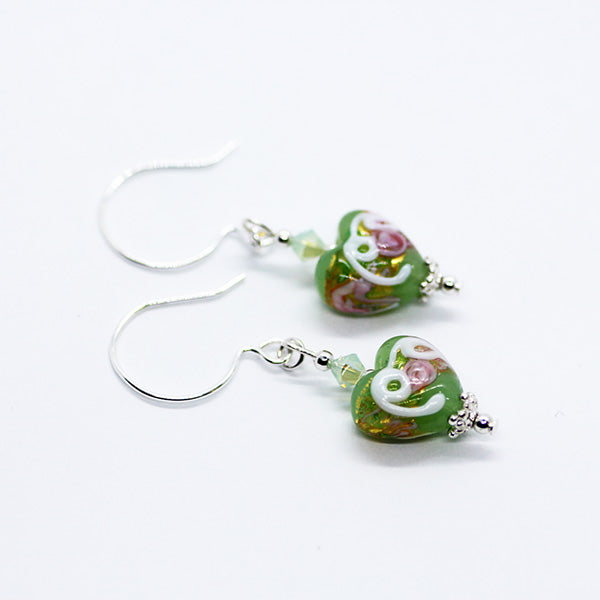 Handmade Murano Glass Green 'Wedding Cake' Heart bead earrings