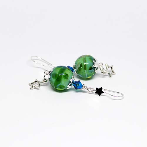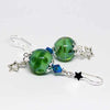 The apple green glass bead is teamed with a blue/green Swarovski crystal bead, silver plated star and is accented with a silver plated star hook.