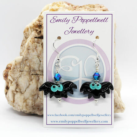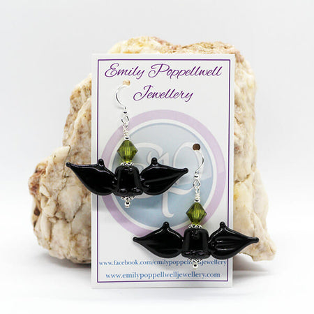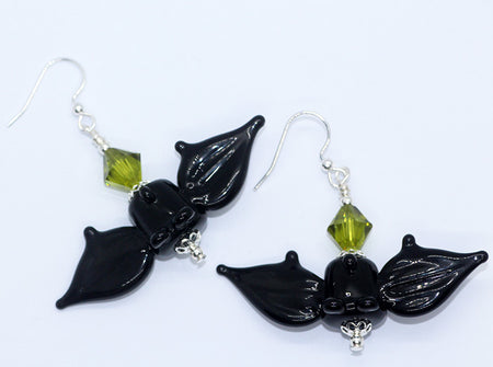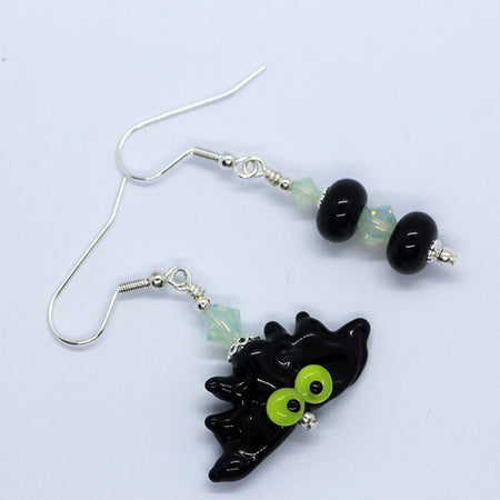 Quick Shop Mismatched Halloween black & white skull and cross bones, green crystals Artisan Glass earrings $45.00 Quick Shop