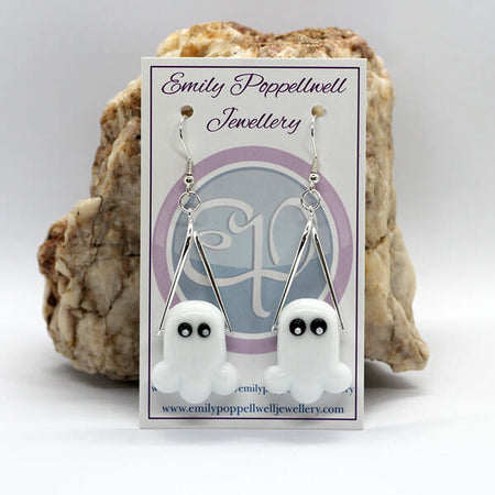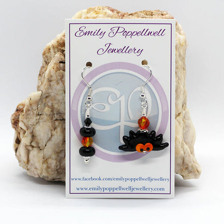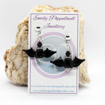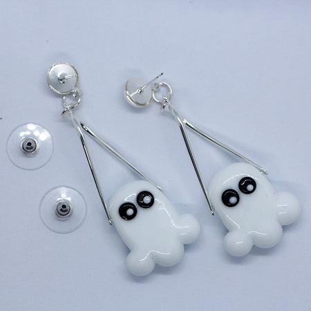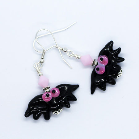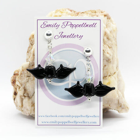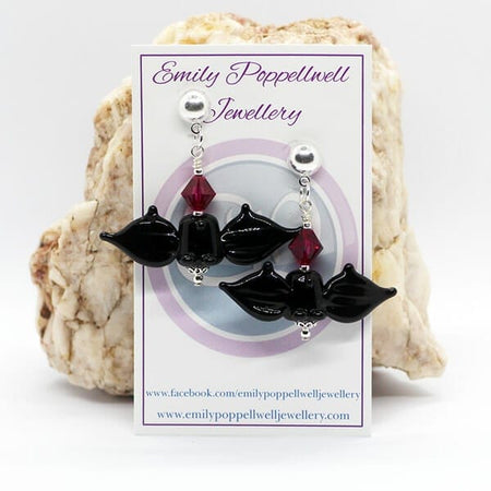 Quick Shop Mismatched Halloween black & white skull and cross bones, red crystals Artisan Glass earrings $45.00 Quick Shop
