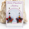 Handmade Murano Glass Murrini Star Earrings with Star French Hooks Red/Yellow Accent