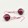 Maroon Ribbed Murano Glass Earrings with pink enamel hooks