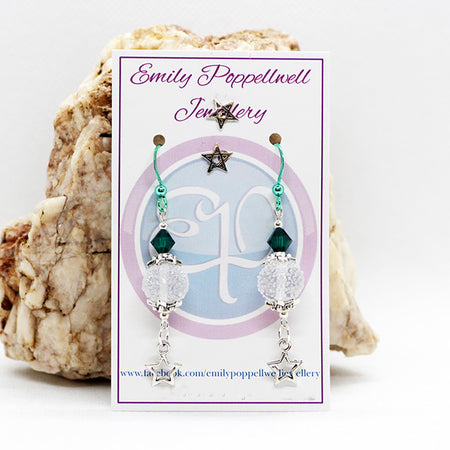 Handmade Black/Gold Murano Glass Star Earrings with Silver Plated Hooks with Bonus SS Star cuff