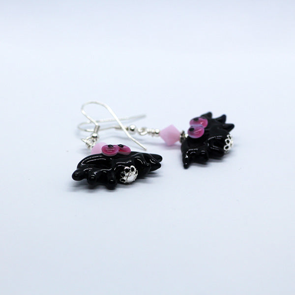 Handmade Artisan glass bats with pink eyes just hanging around! I have matched these beads with soft pink Swarovski crystal beads and quality silver plated components & hooks.