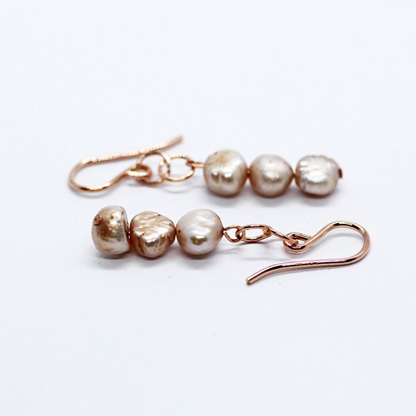 Handmade Light Pink/Cream Cultured Pear Earrings with Rose Gold Plated Hooks