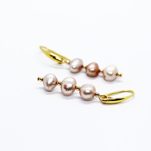 Handmade Pink Cultured Pearl Earrings with Gold Plated Hooks