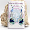 These Handmade Enamel Focal beads with a blue bird design are paired with blue enamel coated hooks and oval hammered silver plated rings. Perfect for your casual look and are quite light so won’t drag.