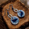 Handmade Blue Bird Enamel Earrings with Silver Plated Hammered Oval and Blue Enamel Coated Hooks
